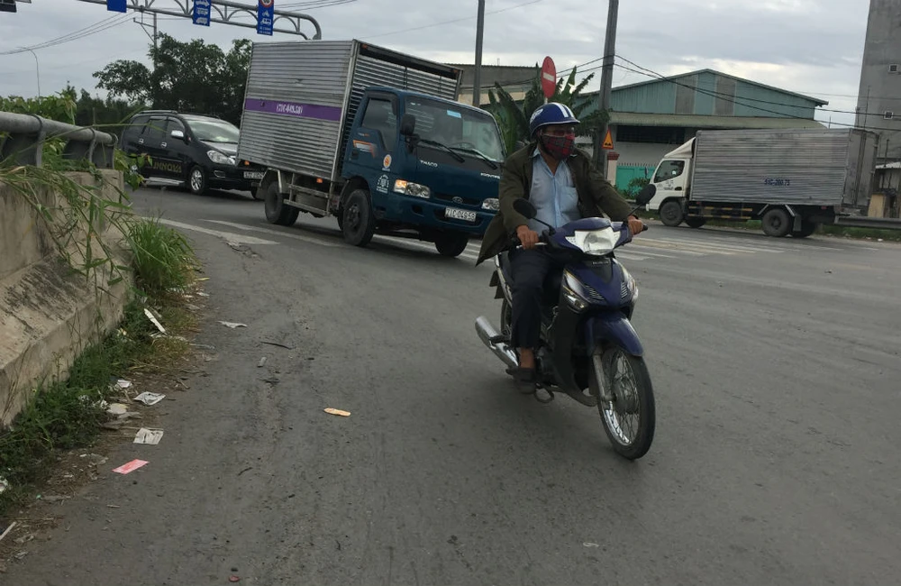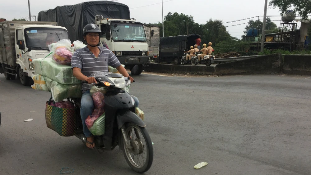 Đường nghiêng, dốc chúi đầu... theo Ban An toàn giao thông TP đây là ngã tư nguy hiểm nhất trên đoạn đường dẫn lên cao tốc. Nhất là khi xe máy đi chung phần đường với xe ô tô khi qua ngã tư này