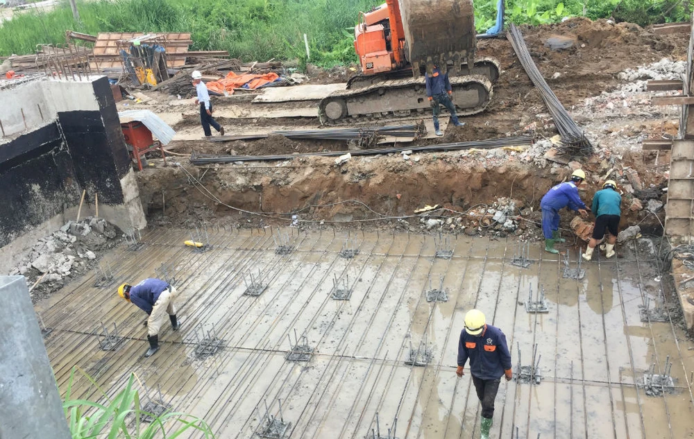 Phần đường gom sát cầu Sông Chùa thi công dang dở