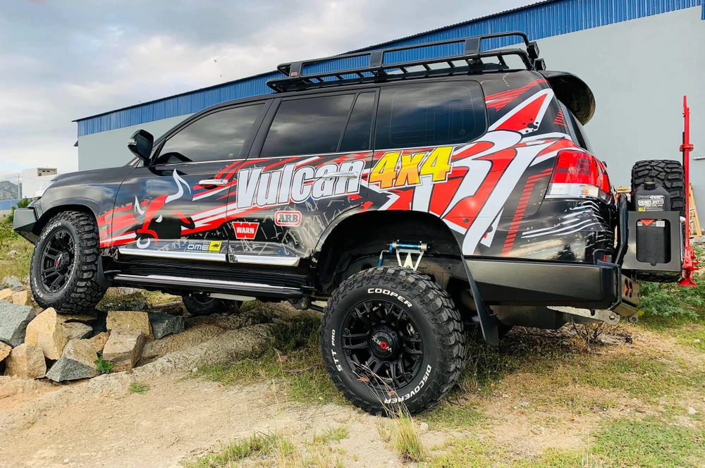 Land Cruiser được coi là “ông hoàng địa hình” của dòng Toyota. Phiên bản chính được thiết kế tinh tế, đẹp mắt. Nhưng với những trang bị được độ thêm khiến chiếc xe lột xác hoàn toàn, đầy màu sắc. Xe được dán decal mới sặc sỡ, bắt mắt, thu hút ánh mắt của người nhìn.
