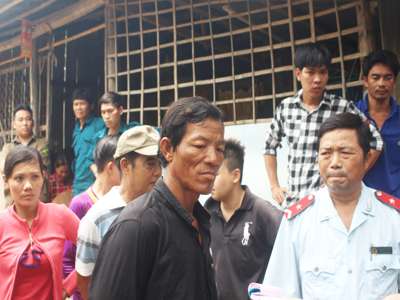 Cơ quan chức năng đến vận động ông Thái bàn giao lại cá thể cá. Ảnh: ĐÔNG HÀ