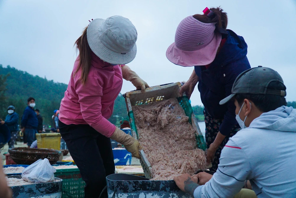 Nhiều ngư dân cho biết năm nay đánh bắt được nhiều ruốc nhưng ít thương lái đến mua hơn so với năm ngoái. Ảnh: BT