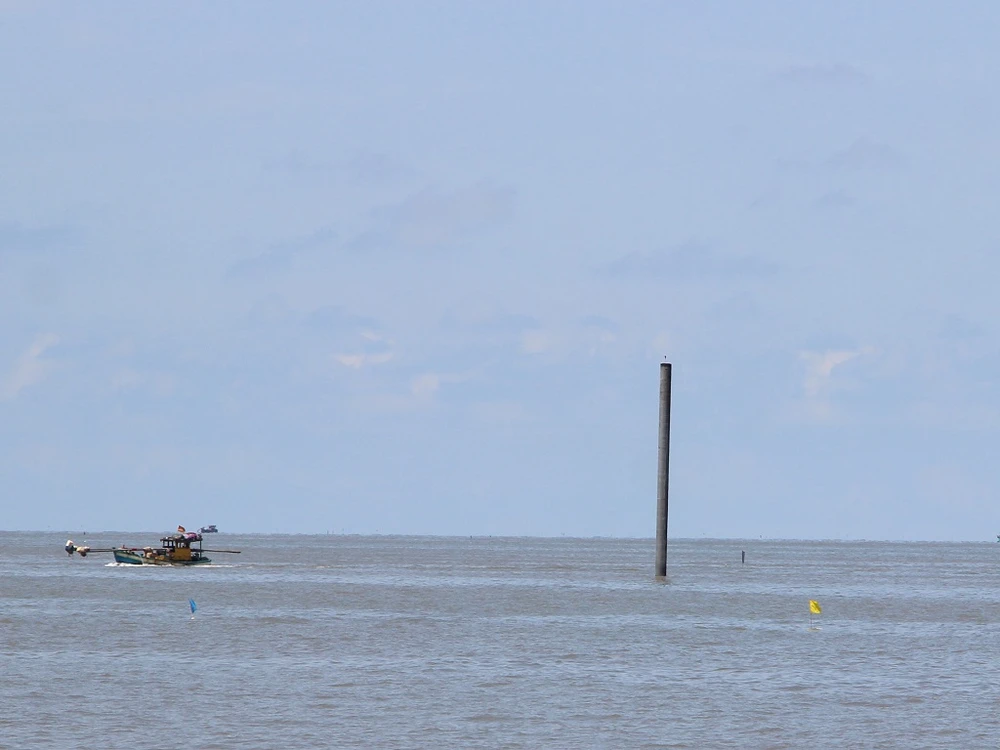 Những cây cừ vừa cắm xuống cửa biển Gành Hào bị ngư dân phản ảnh. Ảnh: CTV