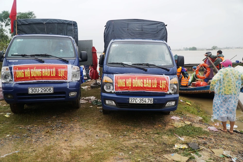 Trên bờ, các xe tải từ khắp mọi miền đất nước chở hàng hoá cứu trợ về đã đậu sẵn. Mọi người có mặt tại bến, không ai bảo ai nhưng tự giác lao vào bốc hàng xuống ghe.