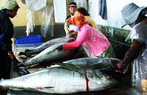 Sơ chế cá để xuất bán tại cảng phường 6, TP Tuy Hòa, Phú Yên. Ảnh: TẤN LỘC