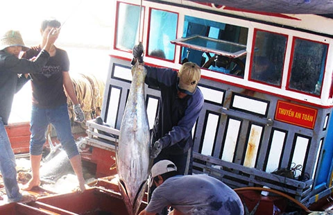 Ngư dân Phú Yên được mùa cá ngừ ngay chuyến biển đầu vụ. Ảnh: TẤN LỘC