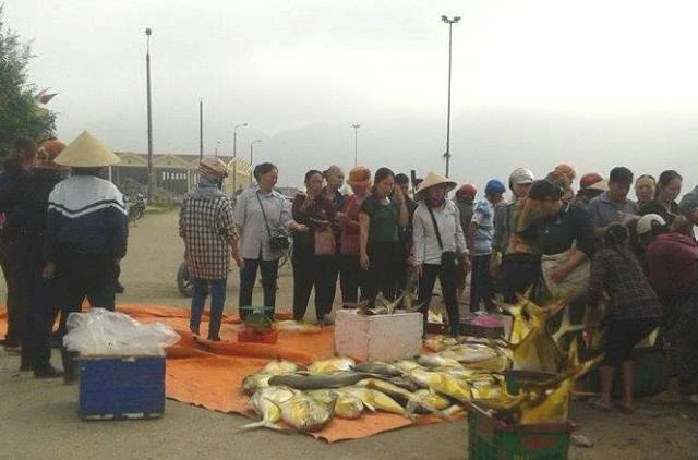 Ngay sau khi tàu cập bến cảng cá Cửa Sót, xã Thạch Kim, ông Minh đã bán mẻ cá trên cho người dân và thương lái với giá gần 400 triệu đồng.