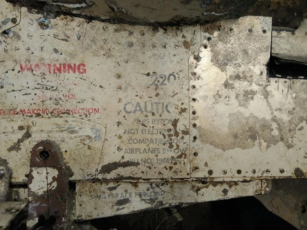 Các ký hiệu trên vật thể nghi là bộ phận của máy bay: Ảnh: BP Quảng Bình