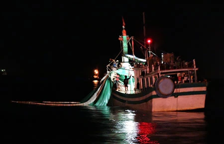 Lợi dụng đêm tối nhiều tàu giã cào ngang nhiên hành nghề ven đảo Lý Sơn. Ảnh: PHẠM MỊNH
