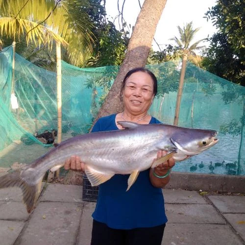 Chủ trang trại cho biết đây là lần hai cá basa “khủng” như thế theo con nước bơi từ ngoài sông vô ao ở cù lao. Cách đây gần một tháng, người làm ở trang trại cũng vây bắt được một con cá basa 9 kg.