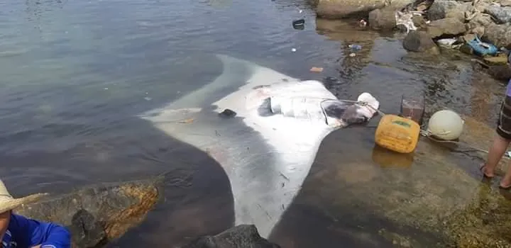 Ông Nguyễn Văn H (thôn Tây, xã An Vĩnh, huyện Lý Sơn, Quảng Ngãi), chủ tàu cá bắt được cá đuối “khủng” trên, cho biết tàu của ông hành nghề chong đèn câu đêm cách đảo Lý Sơn khoảng ba hải lý. Khoảng 3 giờ sáng cùng ngày khi đang làm nghề, bỗng nhiên mọi người thấy con tàu rung lắc mạnh, kiểm tra thì phát hiện một con cá đuối bị mắc vào dây neo của tàu. Ông và bạn chài dùng lưới, dây neo bắt cá và lai dắt về bờ.