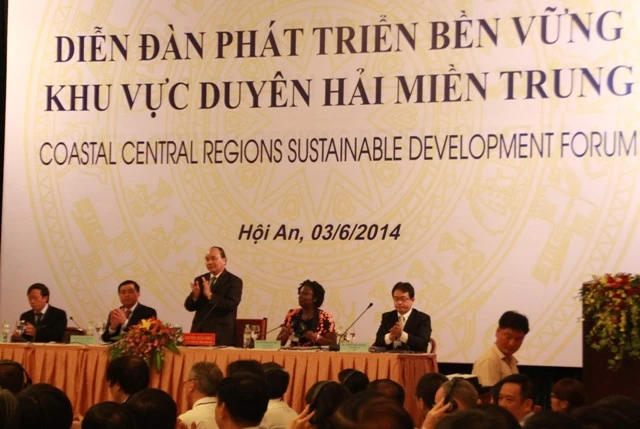 Diễn đàn có sự tham dự của lãnh đạo chín tỉnh duyên hải miền Trung và lãnh đạo các bộ ngành, Ngân hàng thế giới.