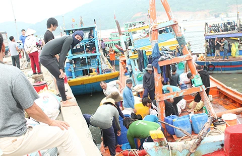 Ông Nguyễn Thành Sơn, Giám đốc Cảng cá Cửa Sót (Thạch Kim, Hà Tĩnh), cũng cho hay hiện nhiều tàu thuyền ở cảng vẫn ra khơi đánh bắt hải sản, chủ yếu là lặn sò. Ngư dân cũng đánh bắt cá, tôm nhưng với số lượng hạn chế, chủ yếu bán thăm dò cho các tiểu thương. “Hiện một số tiểu thương đã bán được hải sản cho người dân nhưng số lượng ít hơn trước đây” - ông Sơn nói.