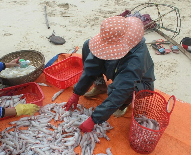 Ông Hoàng Văn Phiến (64 tuổi, ở thôn 4, xã Gio Hải) chia sẻ: "Gia đình tôi trong ngày hôm qua được 2 triệu đồng. Đầu năm ra biển trúng cá nên ai cũng phấn khởi, vui mừng".