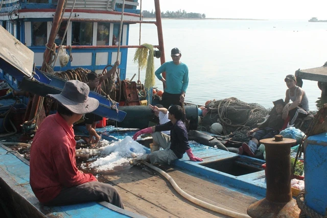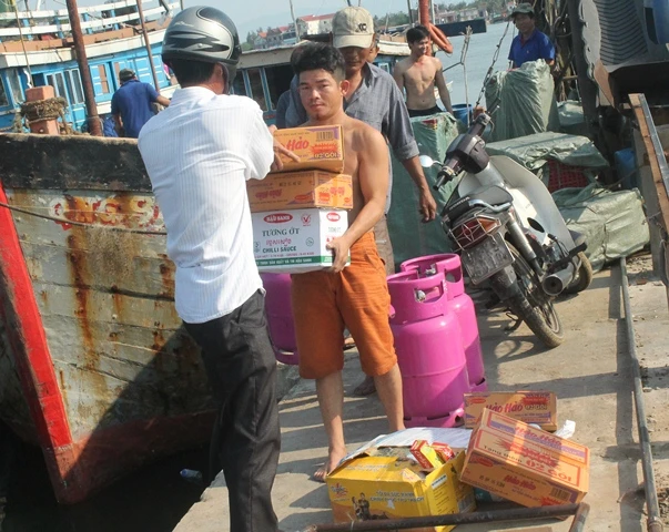 Ngày 1-5, nhiều ngư dân chuẩn bị lương thực để tiếp tục ra khơi.