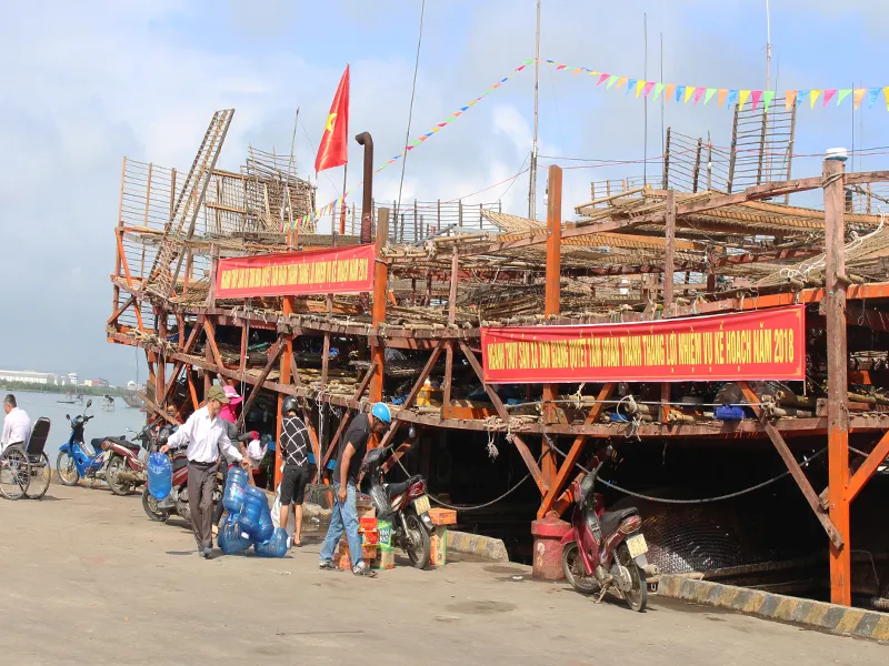 Từ sáng sớm, có rất nhiều tàu vỏ thép, vỏ gỗ của các ngư dân Quảng Nam đã trang trí, băng rồn khẩu hiệu như “Quần đảo Hoàng Sa, quần đảo Trường Sa là của Việt Nam” cùng nhiều ngư dân tập trung tại cảng cá An Hòa (Núi Thành) tham gia lễ ra quân đánh bắt hải sản đầu năm mới Mậu Tuất 2018.