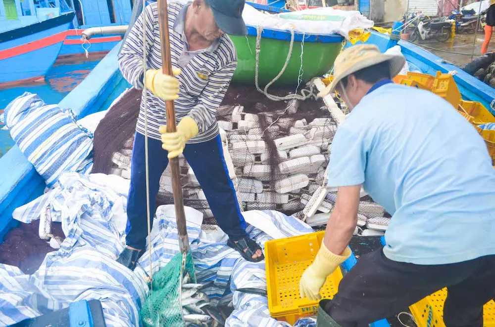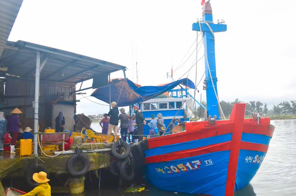 Sau khoảng 7-9 ngày ra ngư trường Hoàng Sa, nhiều tàu cá ngư dân Quảng Ngãi trúng đậm cá nục với hàng chục tấn cập cảng Sa Kỳ. Ảnh: Văn Luận