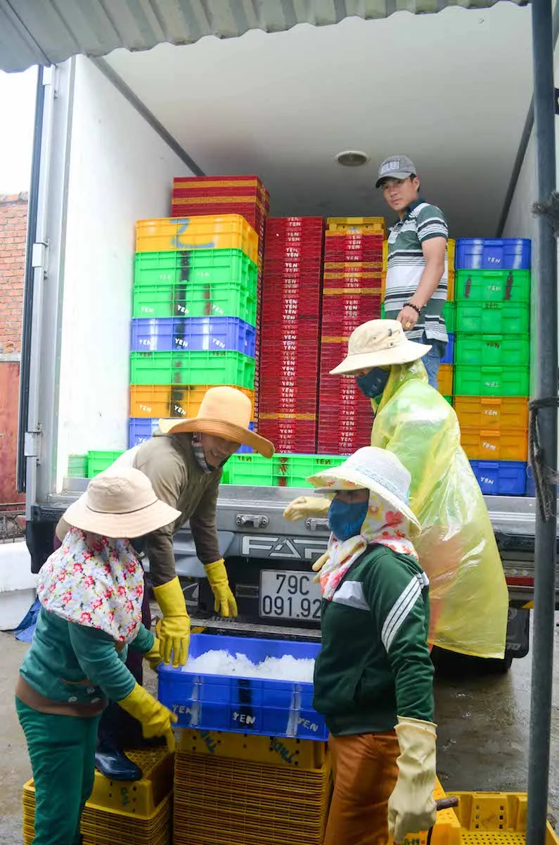 Cá nục được ướp đá xay để bảo quản, tránh bị hỏng khi vận chuyển đi xa. Ảnh: Văn Luận