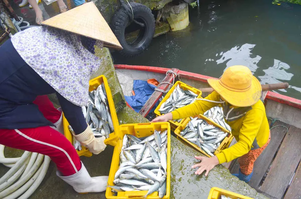 Không chỉ bán cho thương lái, cá nục còn được vận chuyển lên thuyền ra chợ địa phương bán cho người dân. Ảnh: Văn Luận