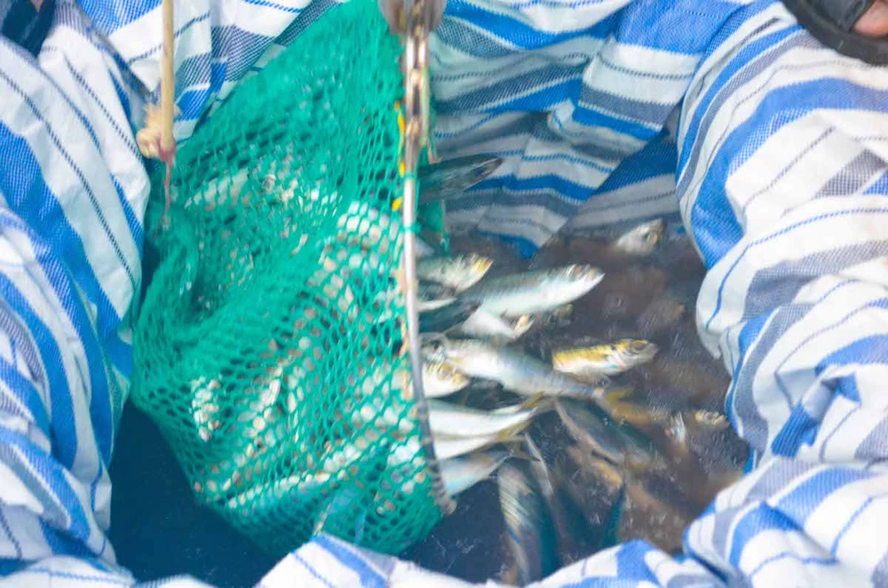 Ngư dân dùng vợt vớt cá nục lên bờ bán cho thương lái. Ảnh: Văn Luận