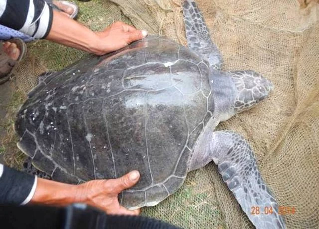 Trước đó, ngày 28-4 anh Hồ Phu trong lúc thu nò sáo trên phá Tam Giang thuộc thôn Thanh Mỹ, xã Phú Diên (Phú Vang, Thừa Thiên – Huế) phát hiện một con rùa biển.
