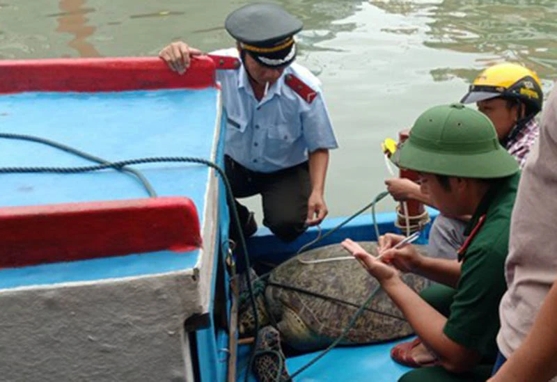 Chi cục Thủy sản thuộc Sở NN&PTNT tỉnh Bình Định phối hợp các cơ quan chức năng tổ chức thả một cá thể rùa xanh (còn gọi là con vích) về lại biển. Con rùa xanh này dài hơn 1 m, nặng 120 kg.