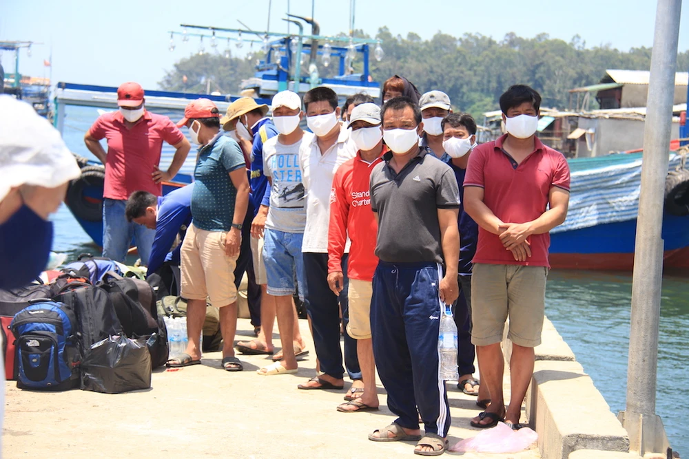 Ngành chức năng Quảng Ngãi đón tiếp, tổ chức thực hiện cách ly cho các ngư dân. Ảnh: TN