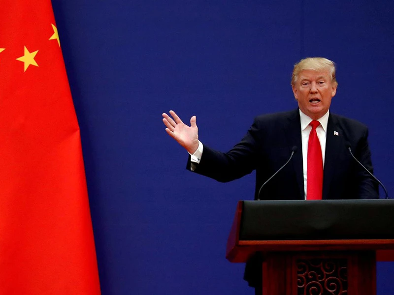 Tổng thống Donald Trump phát biểu tại tòa nhà Quốc hội Trung Quốc trong chuyến thăm chính thức nước này hồi tháng 11-2017. Ảnh: REUTERS