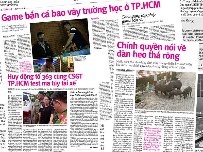 | Đàn heo có “bảo kê”? “Làm gì với đàn heo thả rông trên đường Phạm Văn Đồng?”, “Chính quyền nói gì về đàn heo thả rông trên đường Phạm Văn Đồng?”... là các bài viết phản ánh việc người dân ở khu vực phường 13, quận Bình Thạnh nhiều năm phải chịu đựng cảnh sống chung với đàn heo. Nhiều bạn đọc bức xúc tại sao chính quyền địa phương không xử lý dứt điểm. “Hằng ngày tôi chạy xe ngang qua đây phải bịt mũi vì mùi hôi thối do đàn heo này. Người dân ở đó phải chịu đựng mấy năm trời thì quá khổ rồi. Chính quyền xử phạt mà chủ nuôi vẫn không chấp hành là đành bó tay hay sao?” - QUÂN LÊ. “Một đàn heo tung tăng giữa phố thị đông người trong nhiều năm trời, mùi hôi thối thì “nồng nàn” cả khu vực. Vậy mà chính quyền không xử lý gì được hay sao?” - TUẤN VŨ. “Không thể tưởng tượng nổi giữa một đại lộ hiện đại, văn minh của một thành phố lớn nhất nước mà ngỡ như ở đường Rừng Sác. Bó tay thiệt tình luôn” - ANH PHÚ. “Lãnh đạo phường như thế thì có mà khổ bà con, quá sức thờ ơ hay đàn heo có “bảo kê”?” - NGUYỄN PHƯƠNG. |