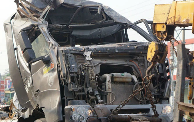 Đến gần 10 giờ cùng ngày, hiện trường vụ tai nạn mới được giải quyết xong, xe đầu kéo được xe cứu hộ đưa đi khỏi hiện trường.