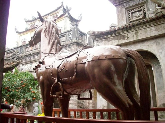 | Ngựa mới được đặt trong khuôn viên đền Phù Đổng. |