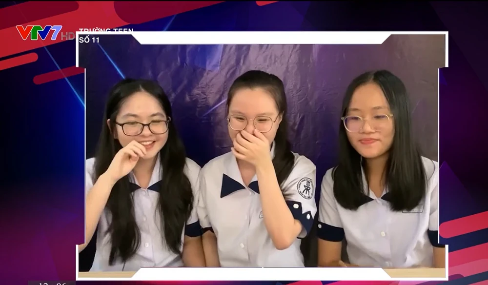 Ba thành viên của đội Ủng hộ - trường THPT Nguyễn Quang Diêu (Đồng Tháp). Ảnh chụp màn hình