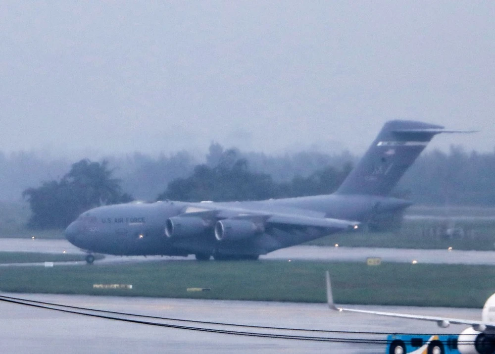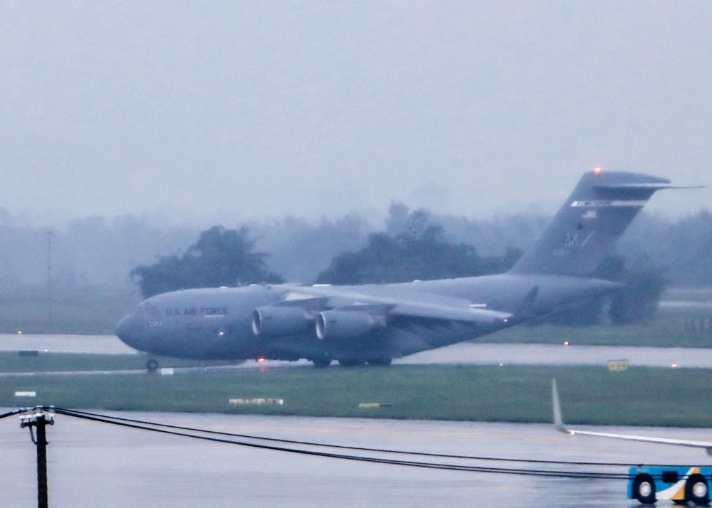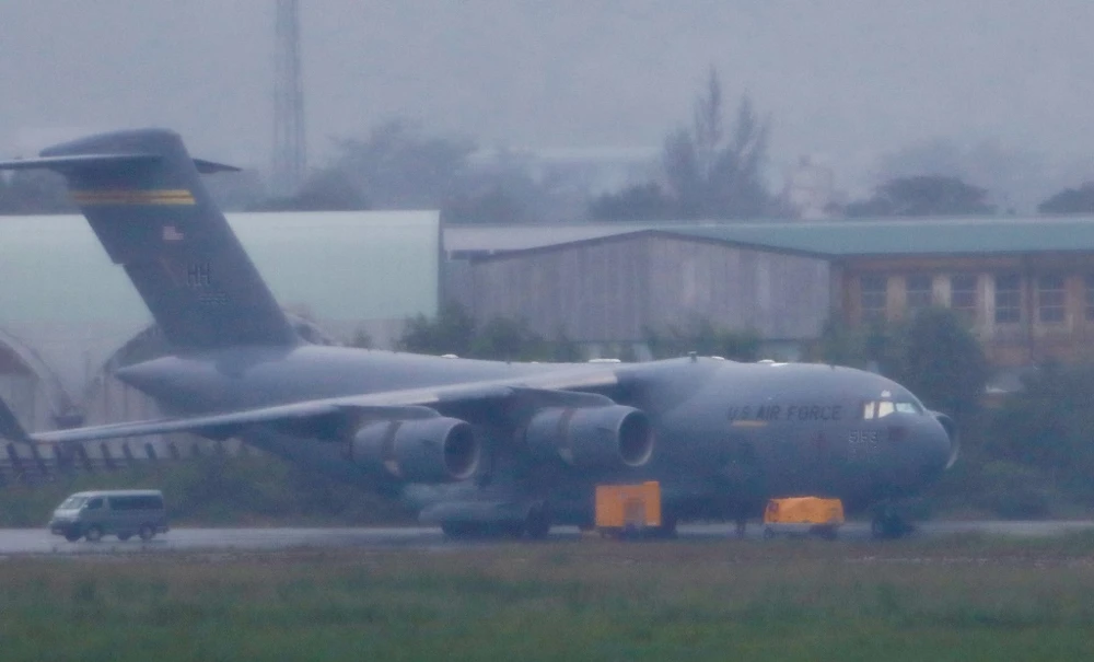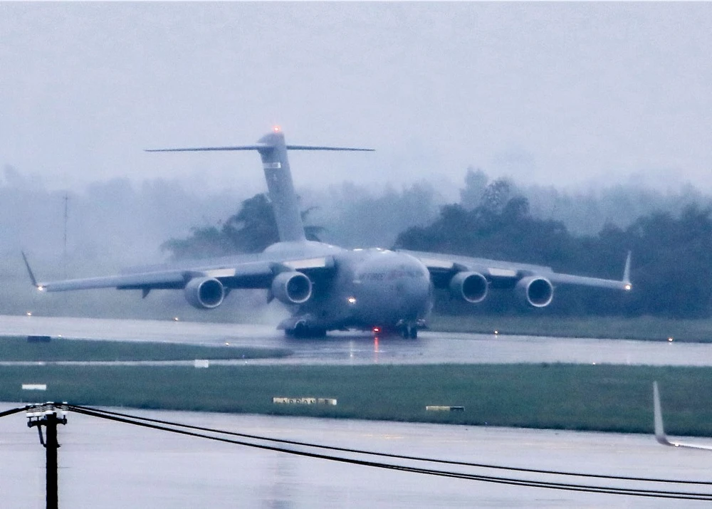 Một chiếc C-17 khác đáp vào chiều tối qua vẫn đang đậu tại sân bay Đà Nẵng