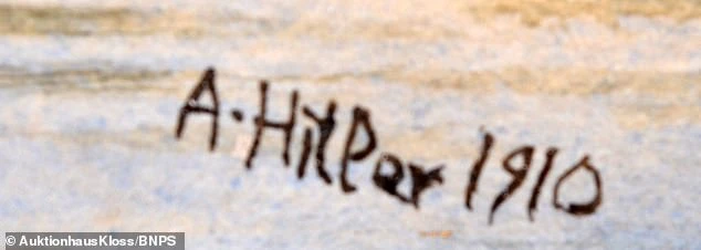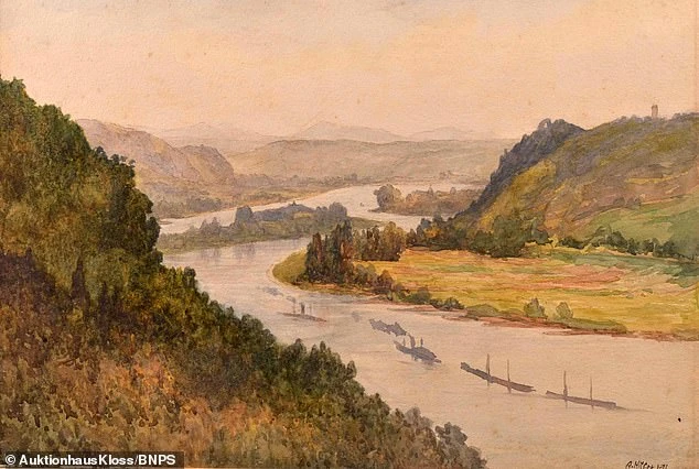Trong số các bức tranh, một bức có tiêu đề Alpenlandschaft có hình ảnh một người đàn ông ngồi trên tảng đá cạnh dòng suối được cho là chân dung của Hitler thời trẻ.