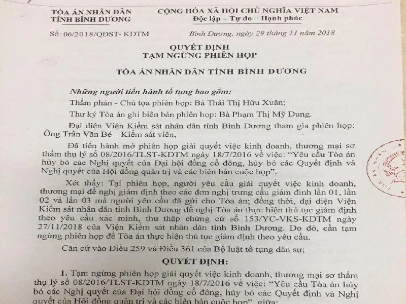 Các tài liệu này do người đại diện theo ủy quyền của ông Vũ và công ty nộp theo yêu cầu của TAND tỉnh Bình Dương.