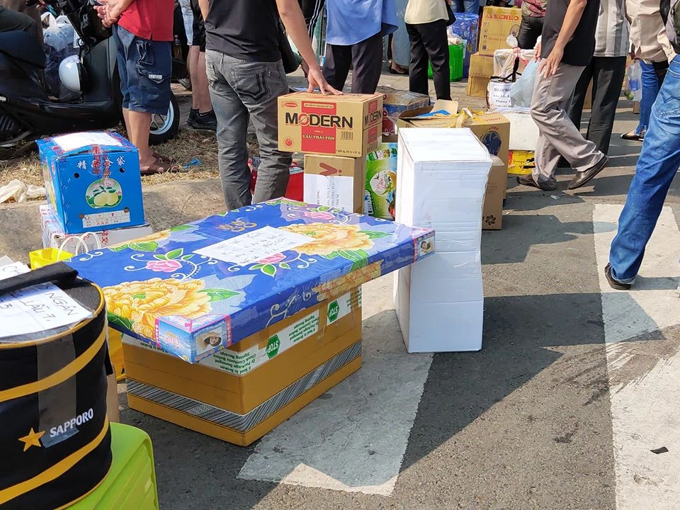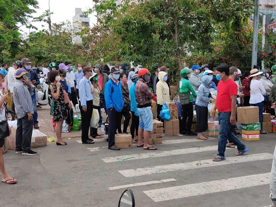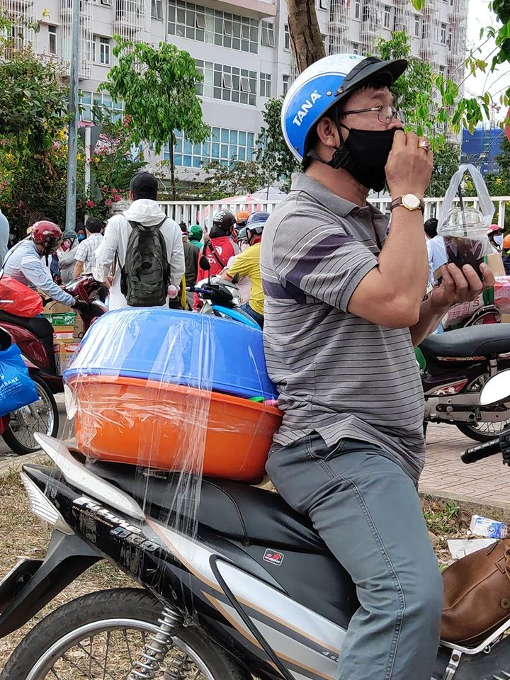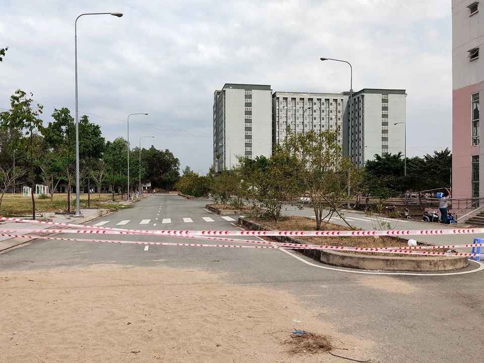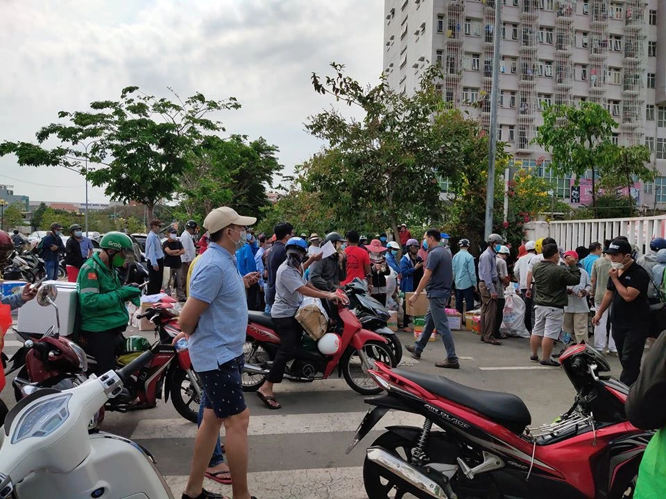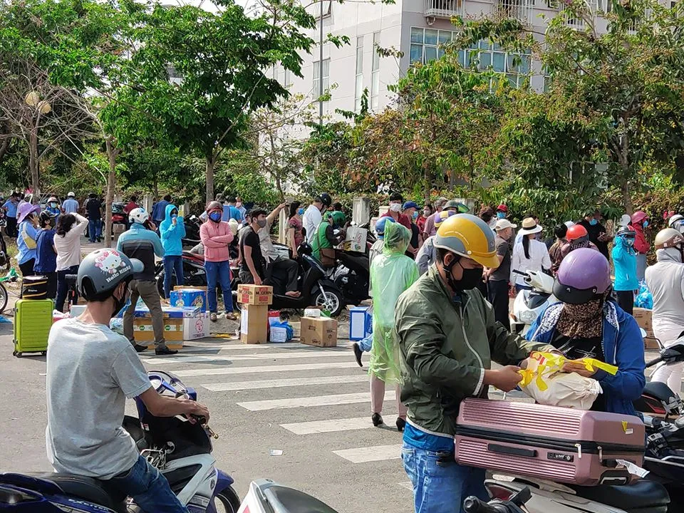 Chính vì thế mà càng lúc số người tụ tập, hàng hóa, xe cộ vẫn đổ về dồn ứ nơi này. Tại khu A ký túc xá ĐH Quốc gia, xe hơi khoảng trăm chiếc đậu thành hai ba hàng dài dọc kín hai bên long đường. Xe máy dựng thành dãy dài trên lề đường dọc theo hàng rào khu ký túc xá đang cách ly.