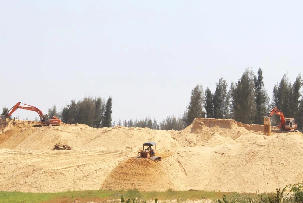 Nhiều phương tiện ồ ạt san ủi rừng phòng hộ ven biển tại TP Tuy Hòa để làm sân golf. Ảnh: TẤN LỘC