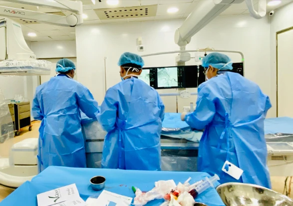 Tiếp theo, các BS tiến hành can thiệp xử lý chảy máu do vỡ động mạch bằng kỹ thuật nút tắc động mạch phế quản cầm máu BAE dưới sự hỗ trợ của máy chụp mạch số xóa nền. Hiện bà T. qua cơn nguy kịch.