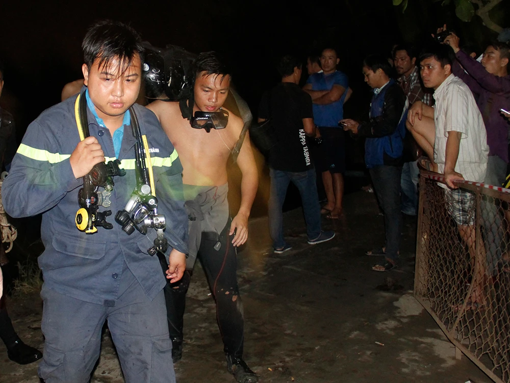 Trước đó, nhiều người nhái quần thảo để tìm người mất tích ở khu vực cầu sập. Lực lượng cảnh sát giao thông đường bộ, đường thủy cũng phối hợp; canô của lực lượng này liên tục đảo quanh hiện trường, rọi đèn những khu vực nghi có nạn nhân rơi xuống sông trong điều kiện nước lớn, hiện trường chưa thu dọn...