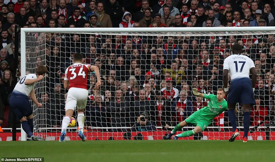 Chỉ 3 phút sau, từ pha phản công rất nhanh, Son Heung-min dùng tốc độ thoát xuống rất nhanh và bị Rob Holding chèn ngã trong vòng cấm. Trọng tài Mike Dean không ngần ngại chỉ tay vào chấm 11m. Hary Kane lạnh lùng sút bóng vào góc trái đánh lừa thủ thành Leno ghi bàn giúp Tottenham vượt lên dẫn 2-1 sau 45 phút đầu tiên của trận đấu.