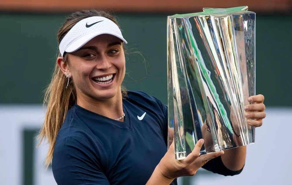 Paula Badosa và cúp vô địch Indian Wells. ẢNH: GETTY