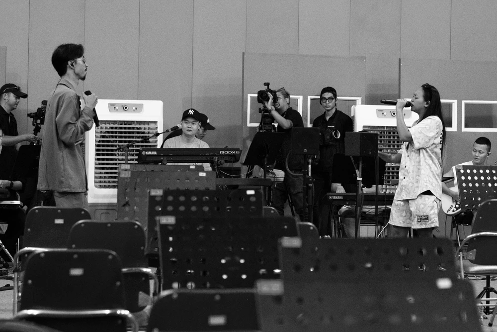 Hình ảnh Đen Vâu tập luyện cùng Kimmese và JustaTee. Ảnh: NSCC |
