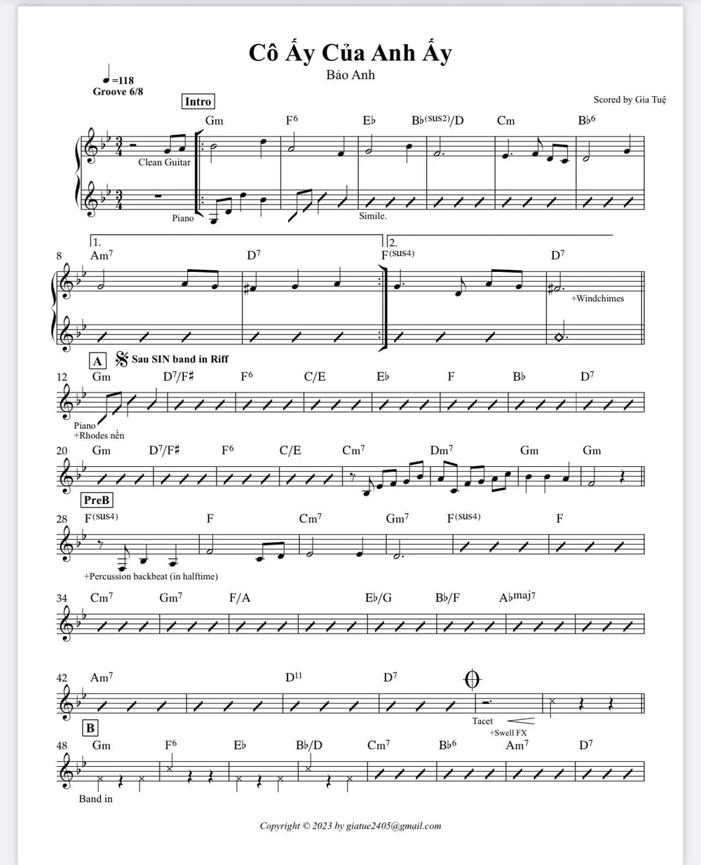 | Tổng Phổ "Cô ấy của anh ấy" do Kai Đinh viết. Ảnh: NSCC |