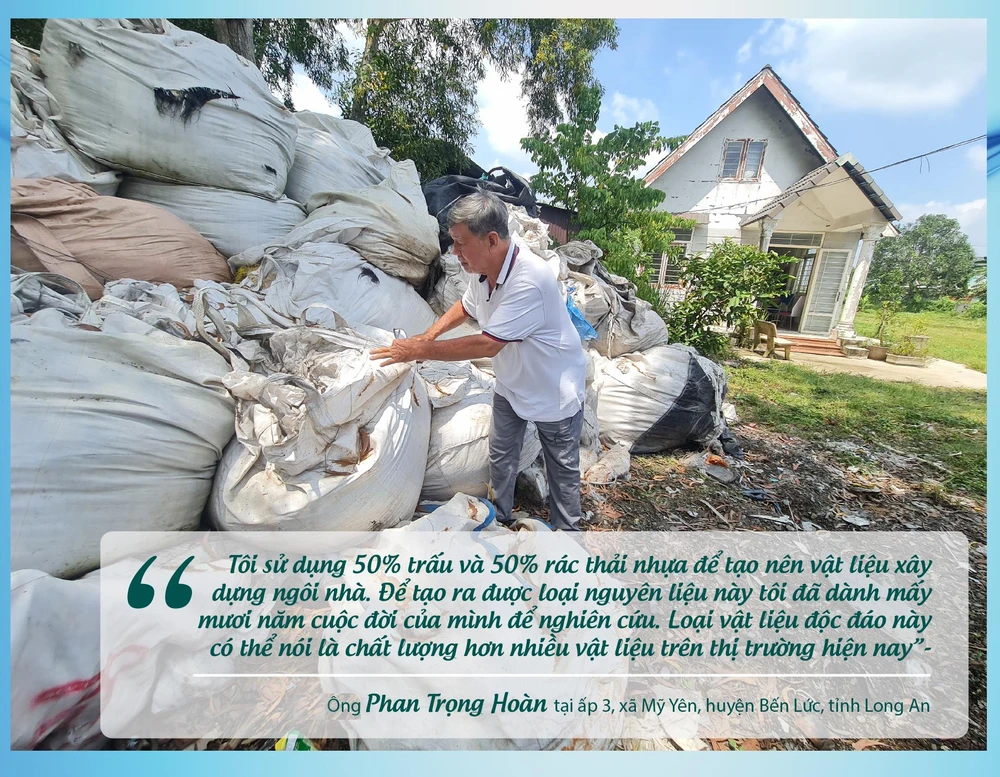 Ông Hoàn chia sẻ, ngoài ngôi nhà rác ở Long An, cũng đã có nhiều căn nhà khác làm từ vật liệu này ở nhiều tỉnh, thành khác.