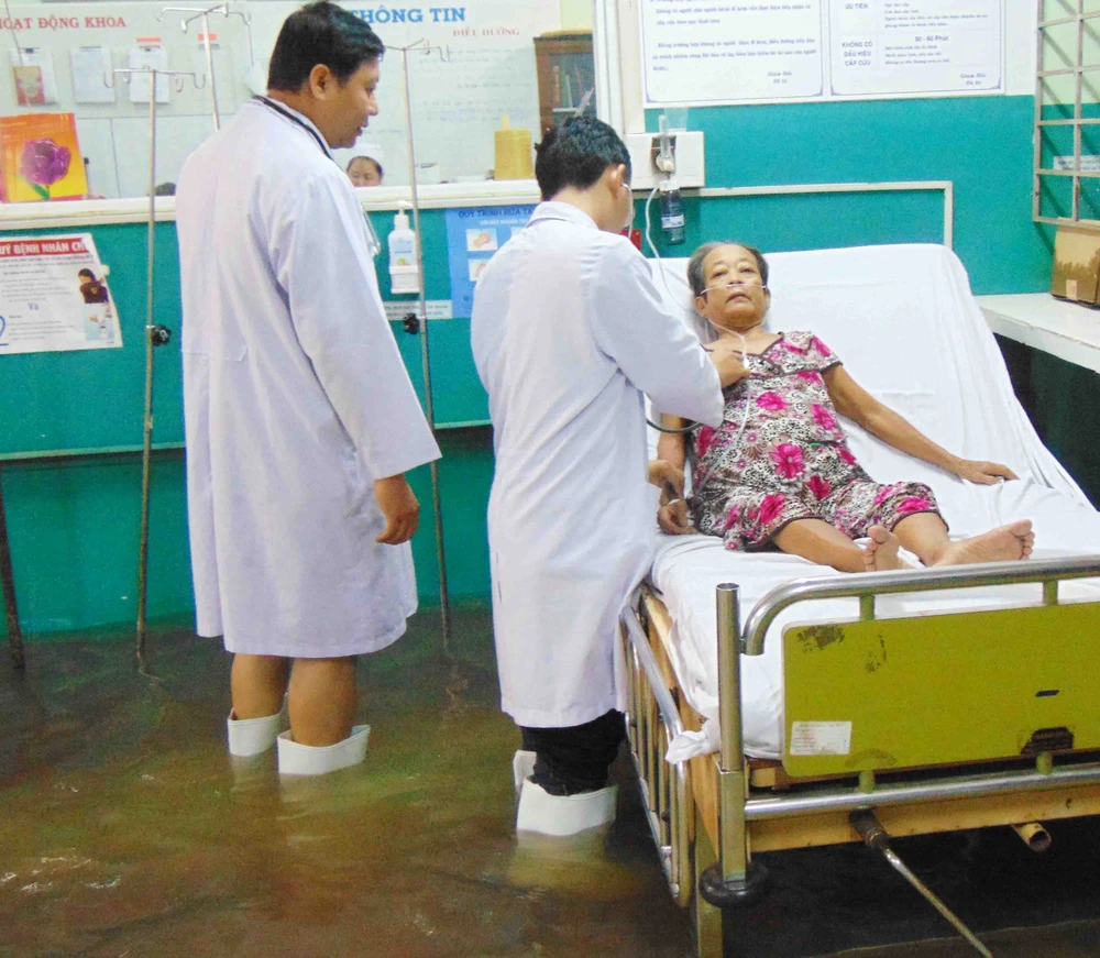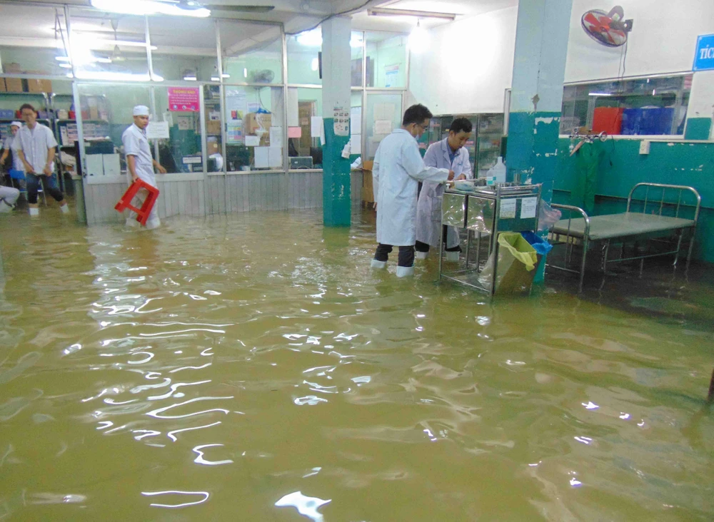“Mặc dù nước ngập khá cao nhưng nhân viên y tế vẫn đảm bảo hoạt động chăm sóc và điều trị bệnh nhân” - BS Bảo nói.