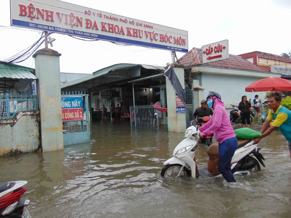 BS Nguyễn Mạnh Bảo, Giám đốc BVĐK khu vực Hóc Môn, cho biết cơn mưa lớn do ảnh hưởng bão số 9 đã gây ngập lụt khá nặng trong khuôn viên BV và một số khoa, phòng.