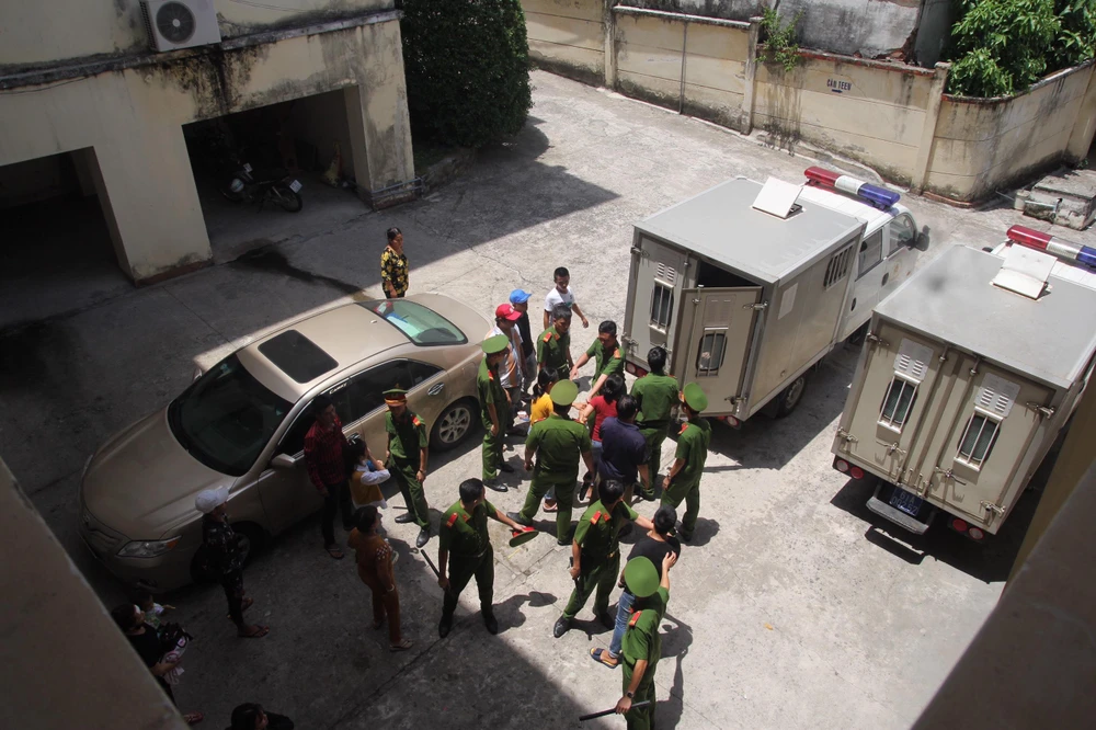 Rất đông người đến tham dự phiên tòa, người thân theo các bị cáo ra tận xe. Ảnh:YC