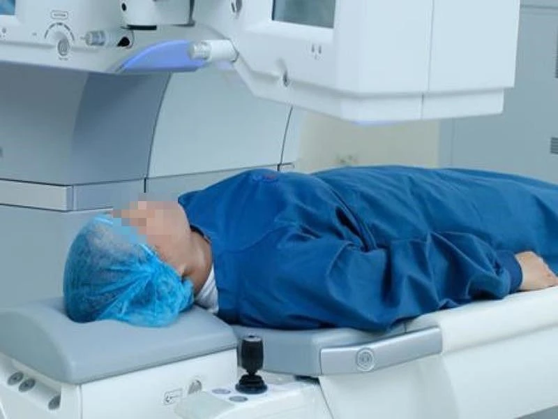 Một bệnh nhân bị lão thị đang được điều trị bằng phương pháp Presbyond. Ảnh: CTV