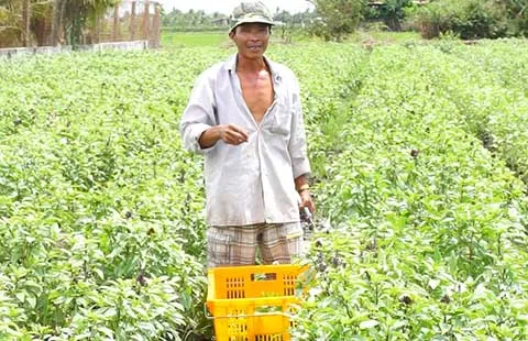 Rồi ông dẫn chúng tôi ra thăm ruộng rau xanh mơn mởn. Ông bảo nhà không có công đất nào. Để có ruộng trồng rau, mỗi năm ông phải thuê ba vụ, tương đương với 3 triệu đồng/năm.