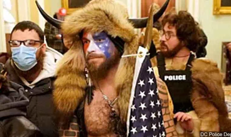 Jacob Chansley trong vụ bạo loạn ở Điện Capitol hôm 6-1. Ảnh: SỞ CẢNH SÁT WASHINGTON D.C.