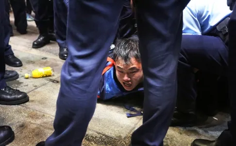Một người biểu tình bị cảnh sát trấn áp và bắt giữ